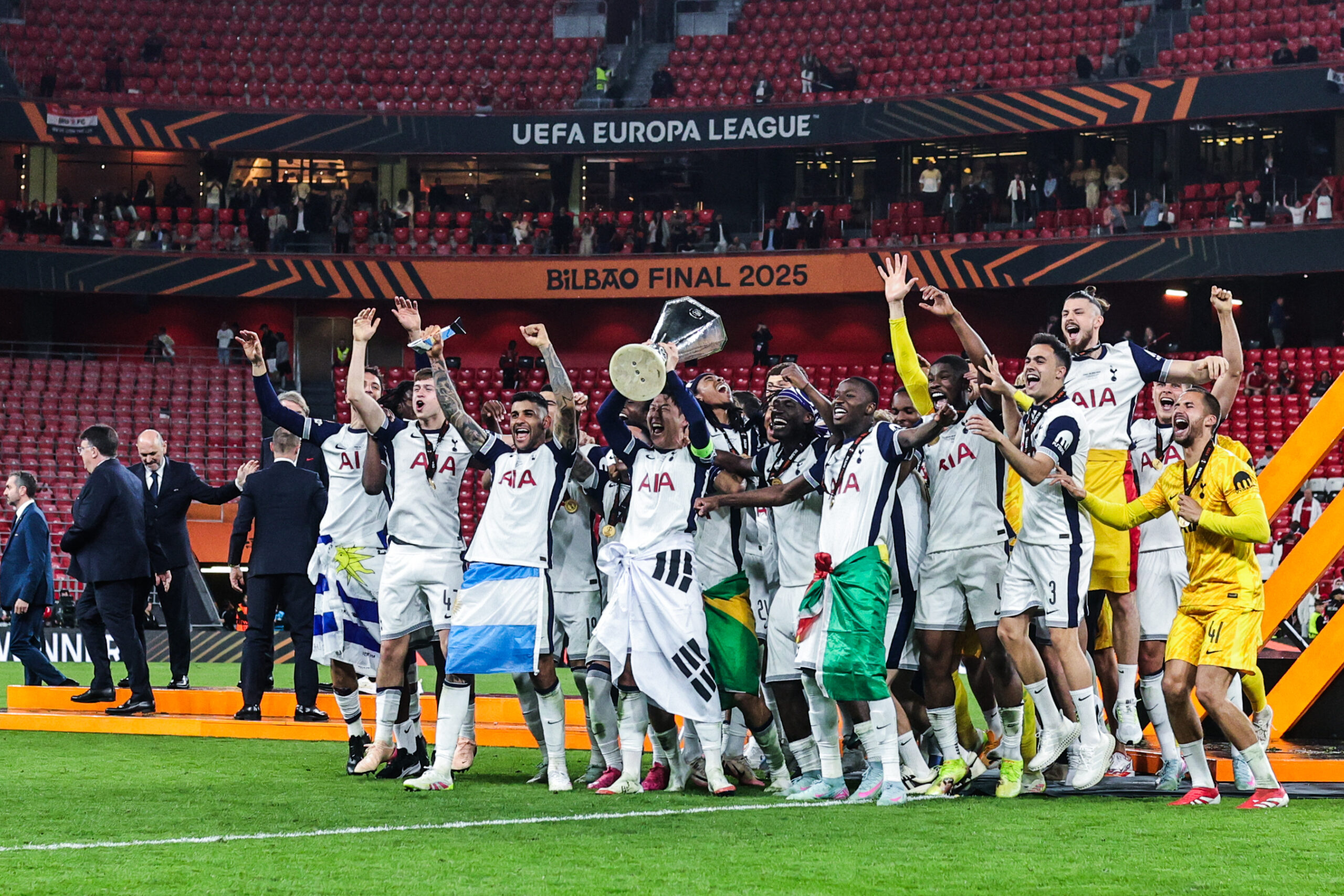 |   Bilbau, Espanha – 21 Maio: Festejos da equipa do Tottenham após vencer a taça. (Foto Pedro Reis – Estádio 11) |