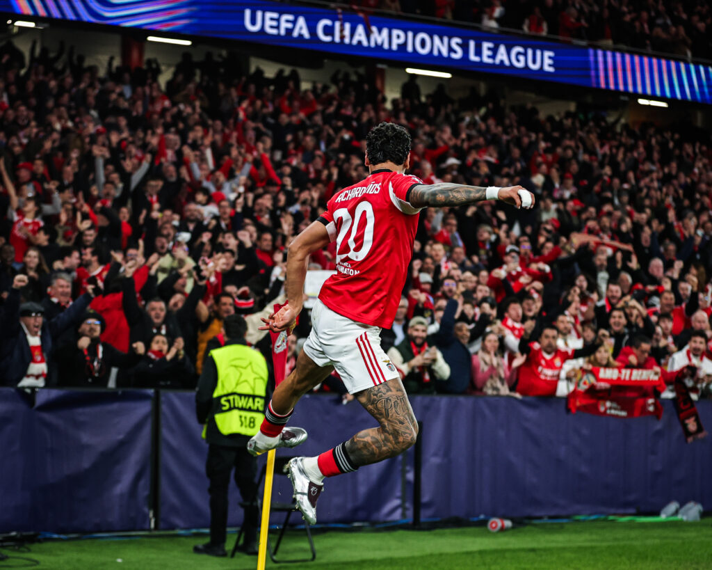 Richard Ríos festeja o primeiro golo na Luz, aos 20′, perante 54.343 espetadores em delírio.