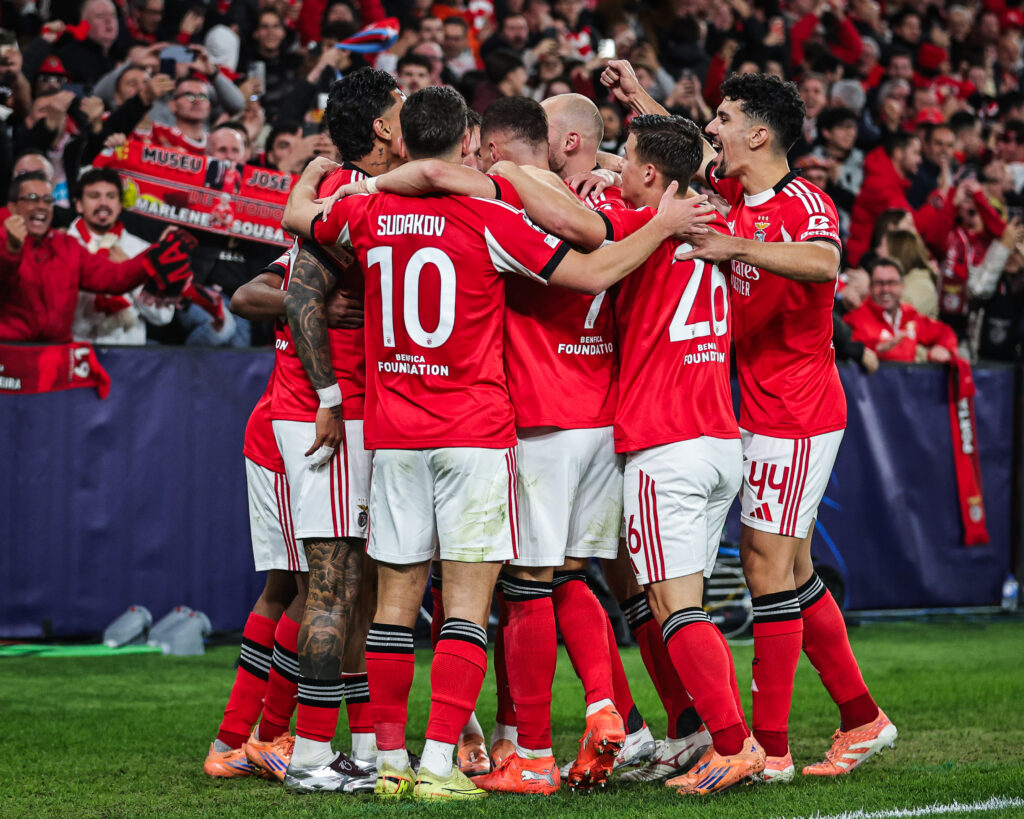 Equipa encarnada festeja junta o golo de Richard Ríos.