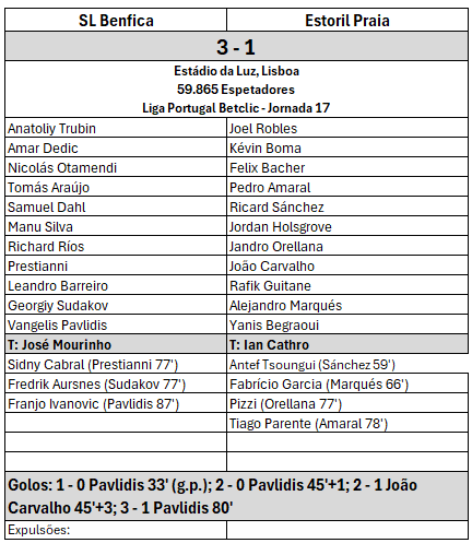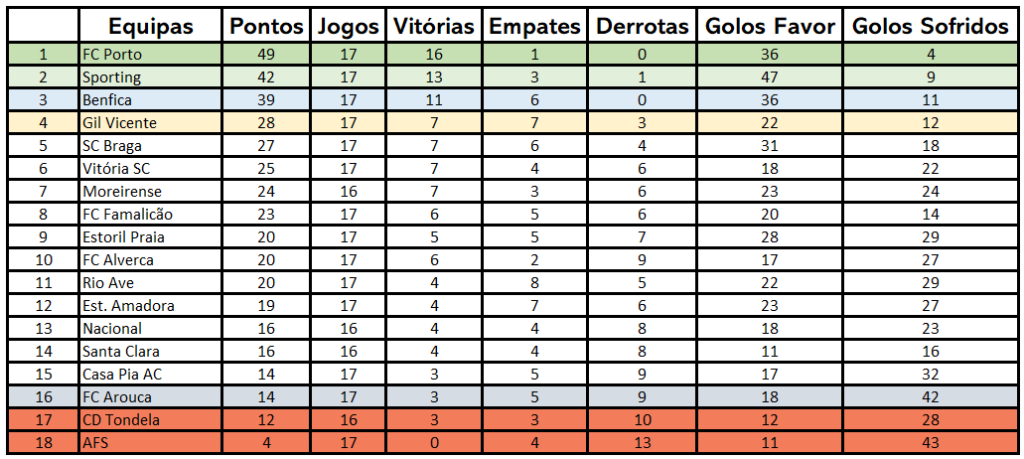 Classificação após a 17ª jornada
