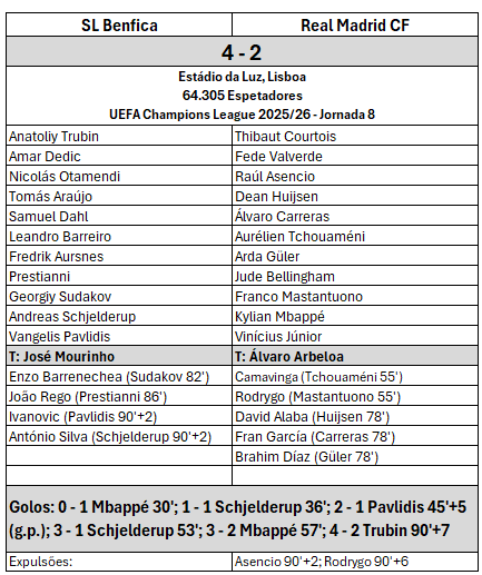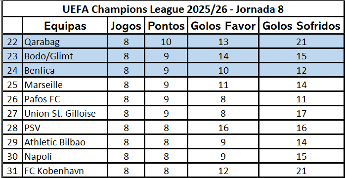 O PSV enquanto esteve empatado com o Bayern, estava em lugar de playoff mas acabou por perder com os alemães. O Sporting deu uma ajuda ao derrotar o Athletic Bilbao, que assim falhou os playoffs. O Nápoles precisava de vencer o Chelsea para passar aos playoffs e esteve em vantagem no jogo, mas acabou por perder. O Copenhaga enquanto esteve em vantagem em Camp Nou, também esteve à frente do Benfica. E finalmente o Marselha, perdeu na Bélgica mas tinha uma melhor diferença de golos, até ao golo de Trubin. Várias equipas contribuíram para o sonho encarnado de atingir os playoffs! |